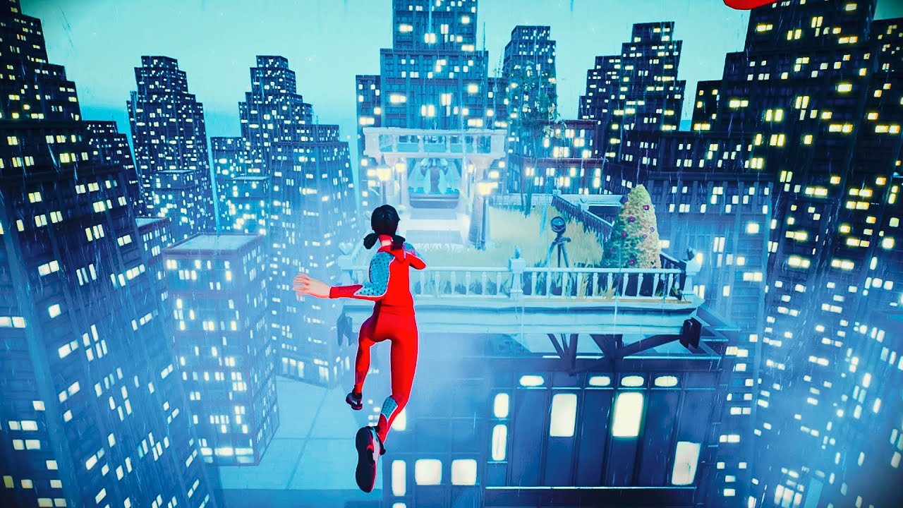 フォートナイトで夜の摩天楼をパルクールするプレイがなんかかっこいい動画。