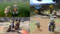 ゲーム内ではデカくて重そうな武器を振り回しているハンターたち。