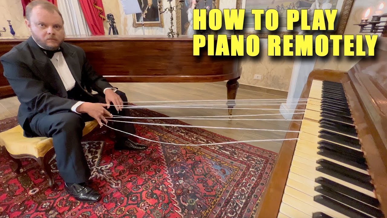 指に糸を巻き鍵盤とつなげば簡単に遠隔操作することができます。
