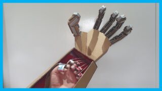 ダンボールで作った五指が連動するメカニカルな拡張ハンド。