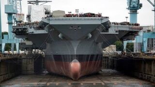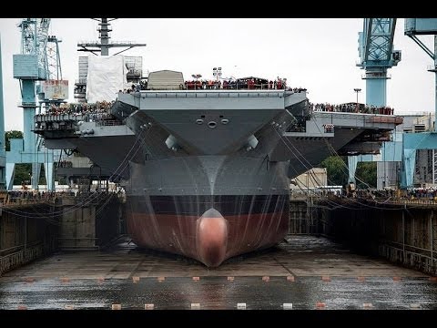 アメリカ海軍のジェラルド・R・フォード級航空母艦を建造しているタイムラプス。