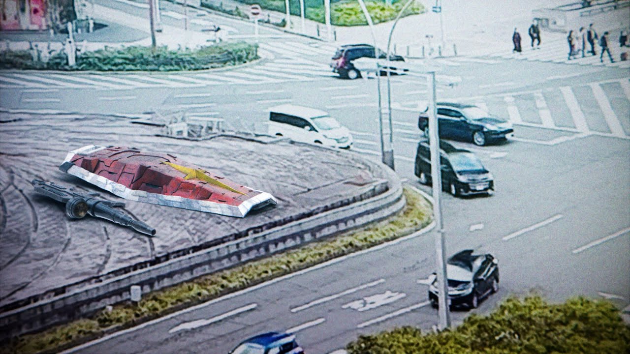 おもしろ名古屋駅前で実物大ガンダムがしょんぼりしながら座り込んでいる動画。