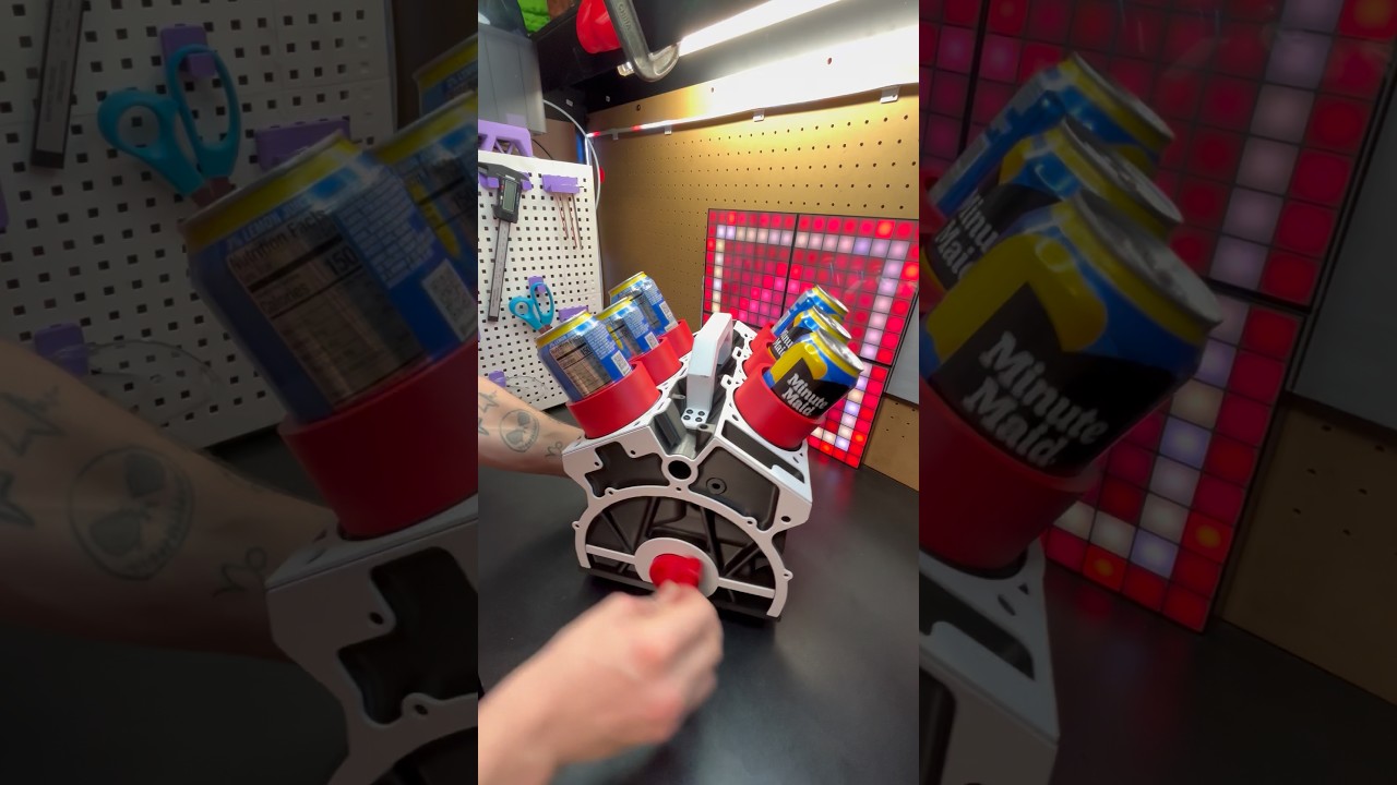 缶ジュースをディスプレイできるV6エンジンを3Dプリンターで作ってみたショート。