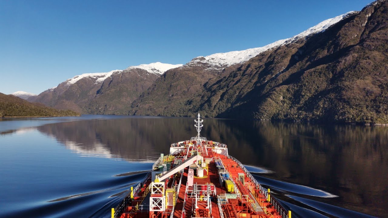 そんな冬の晴れた日のマゼラン海峡を通過するケミカルタンカーのタイムラプス動画。
