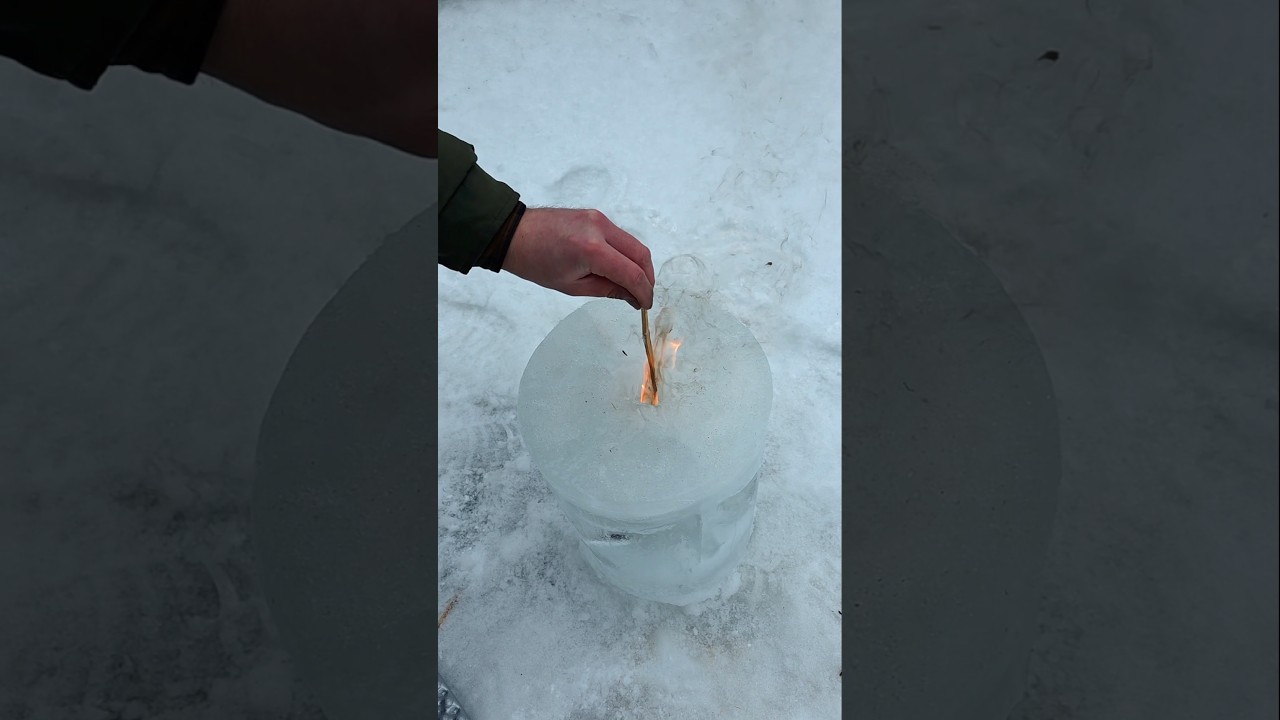 氷で作ったロケットストーブで肉を焼いてみたショート。