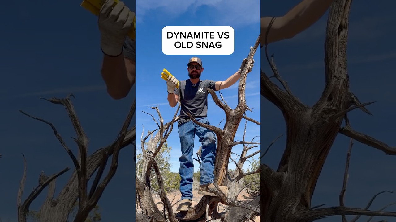 荒野の枯れ木を吹き飛ばすのにダイナマイトの威力はどれくらい必要なのか検証してみた動画。