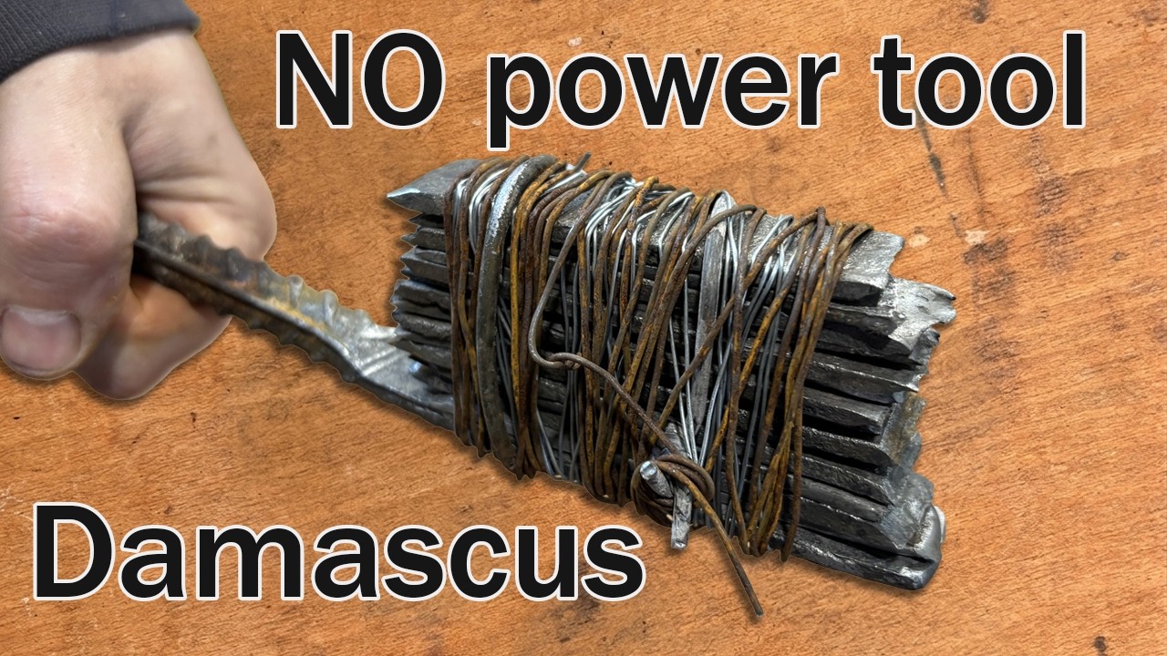 電動工具を使わずにダマスカスナイフを作ってみた動画。