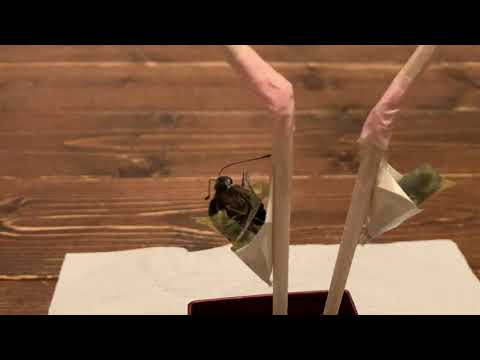 生き物アオスジアゲハの蛹に寄生している虫の除去手術をする動画。