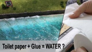 トイレットペーパーと木工用ボンドで表現するジオラマの水面。