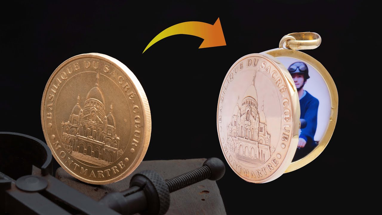 一枚のコインからロケットペンダントを制作する動画。