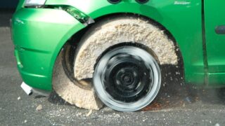 車のタイヤの素材を別のモノにして走行したらどうなるのかの実験。