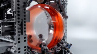 ボールの中に渦巻を発生させる装置をレゴで開発している様子。