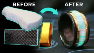 真っ白いオパールとゴールドとカーボンファイバーで作る指輪の制作動画。