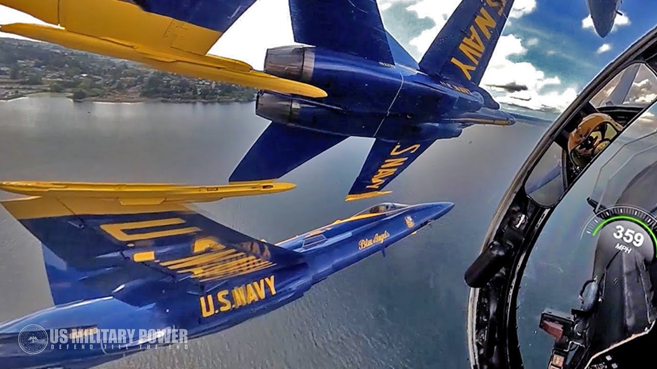 すごいアメリカ海軍所属のアクロバット飛行隊「ブルーエンジェルス」のコックピットからの映像。