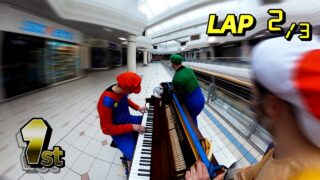ショッピングモールでピアノを弾きながらマリオカートのBGMを演奏する動画。
