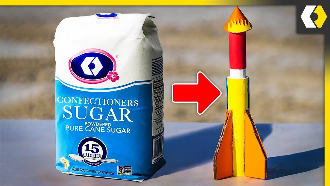 砂糖の粉末に火をつけ空を飛ぶDIY2段階式ロケット。