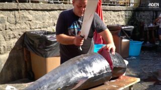 力強い解体が見れるイタリアの魚市場