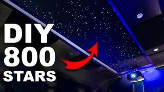ホームシアターの天井を光ファイバーで星空にしていく制作動画。