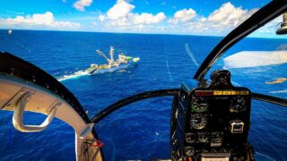 マグロ漁船に着陸するヘリコプターのパイロットが撮影したPOV。