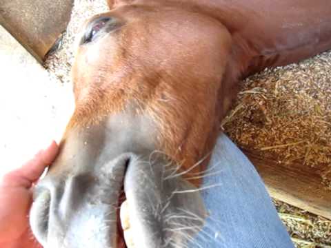 生き物人間の膝枕で眠る仔馬がかわいい動画。