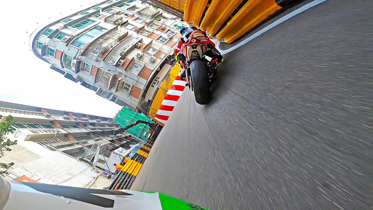 市街地を走るバイクレースのライダー視点がヤバい映像。
