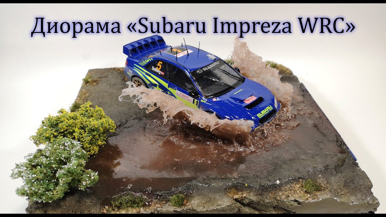 ダートコースの水たまりに突っ込むインプレッサのジオラマ制作動画。