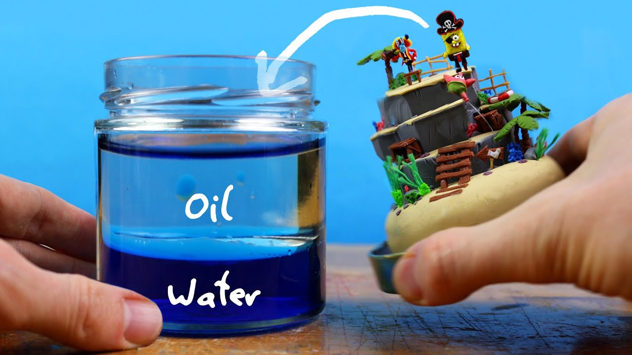 水と油で作るスポンジ・ボブのミニアクアリウムがきれい