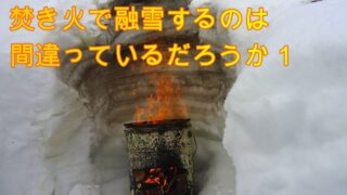 積雪させた雪の穴の中で焚火を焚いたところ、上方しか解けずすぐに火が消えてしまいます。