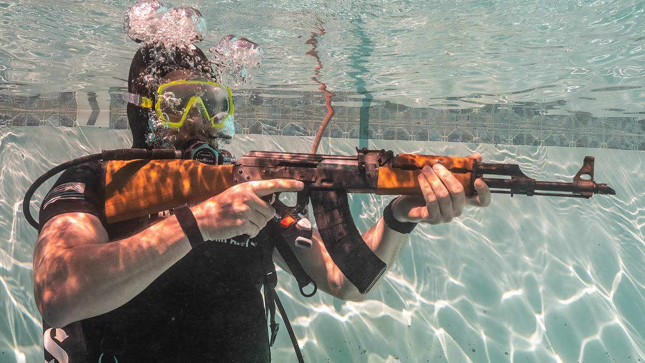 水中で銃を撃ったら実際にどうなるのかを試してみた動画。