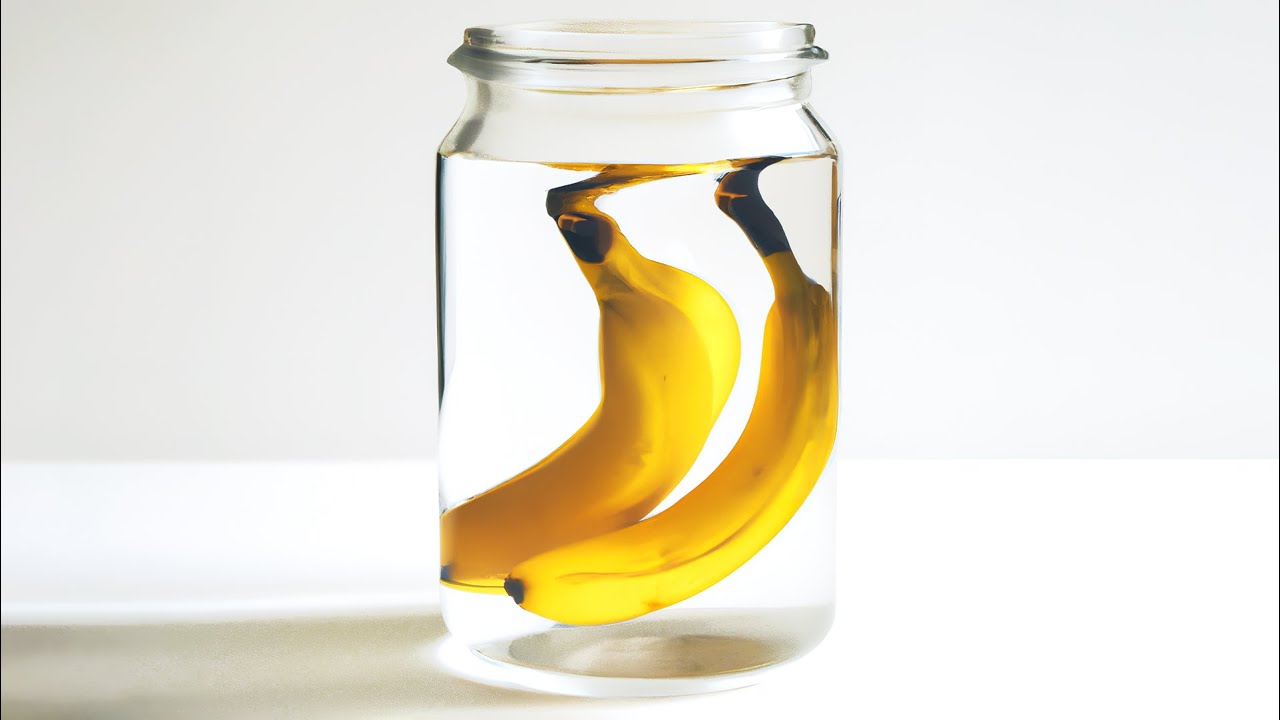 ビンの中を水で満たし、バナナを入れてラップで密封。