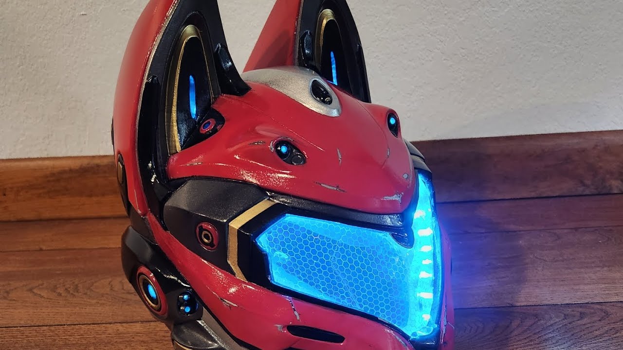 3Dプリンターで作ったメカニカルな猫耳ヘルメットの制作動画。