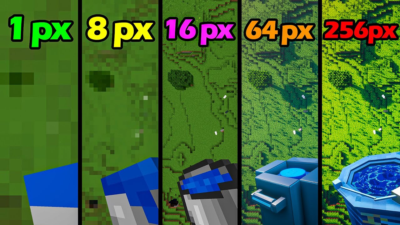 マインクラフトのテクスチャの解像度を1px~512pxまで比較してみた動画。
