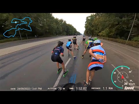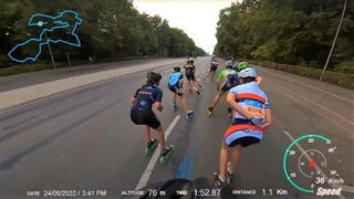 ドイツはベルリンのマラソンコースをインラインスケートで走るヘルメットからの映像。