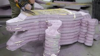 スタイロフォームとタイヤで作る実物大ワニの制作動画。