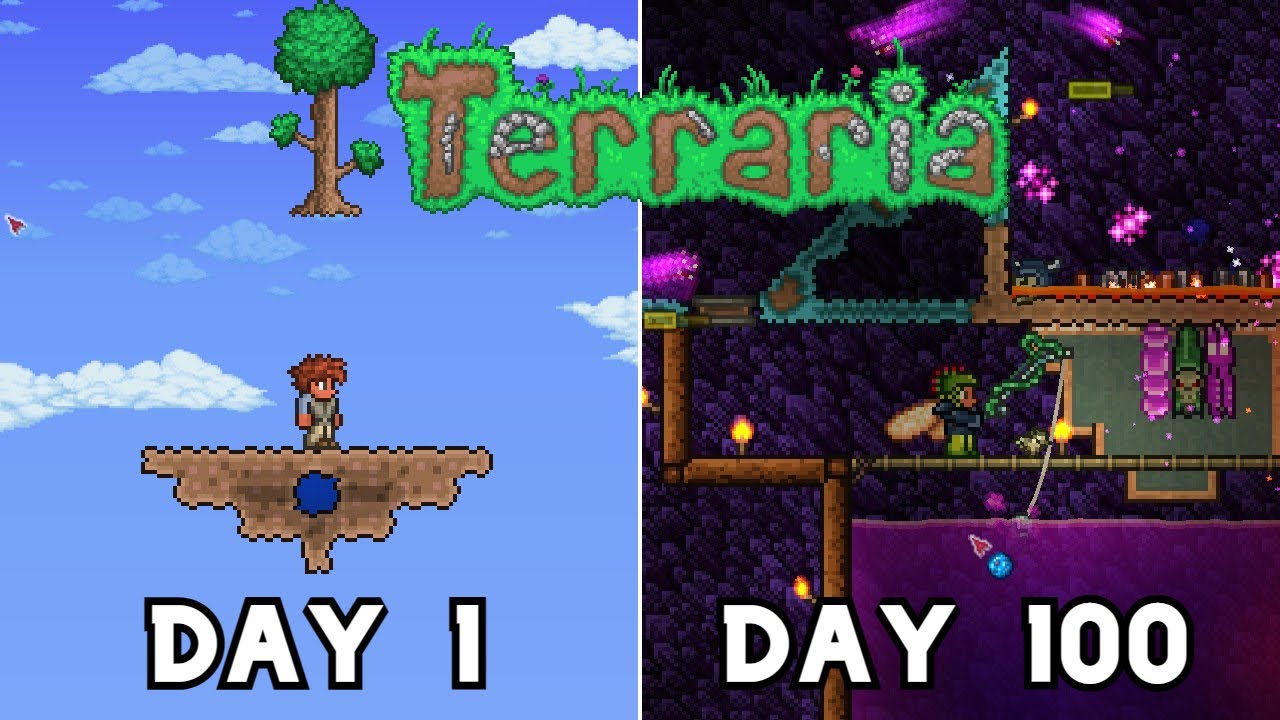 ゲームテラリアのスカイブロックで100日間サバイバルしてみた動画。