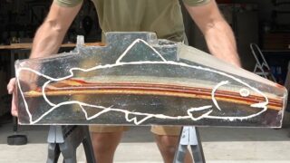 87ポンド(約40kg)のレジンで作ったニジマスの彫刻制作。