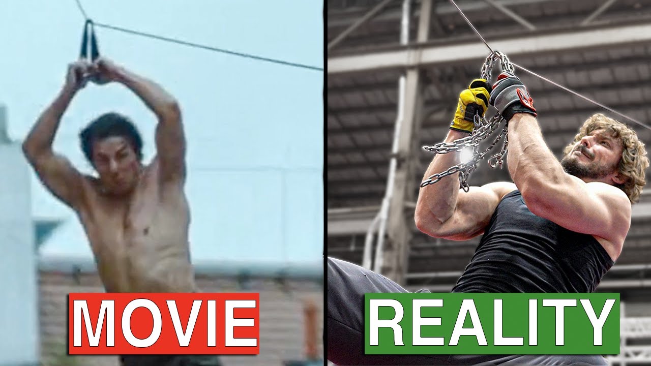 スポーツアクション映画などでよく見るジップラインによる脱出。