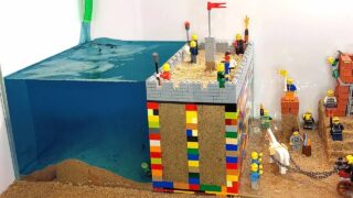 土とレゴで作ったシチュエーションがカオスなダムの決壊をシミュレートするシリーズ。