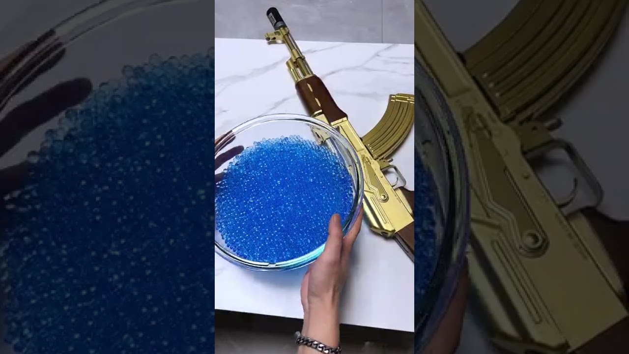 吸水ビーズを打ち出す専用エアガンが楽しそうな動画。