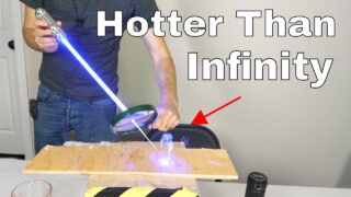 巨大な虫眼鏡で5Wレーザーの焦点を合わせるとどうなるか検証してみた動画。