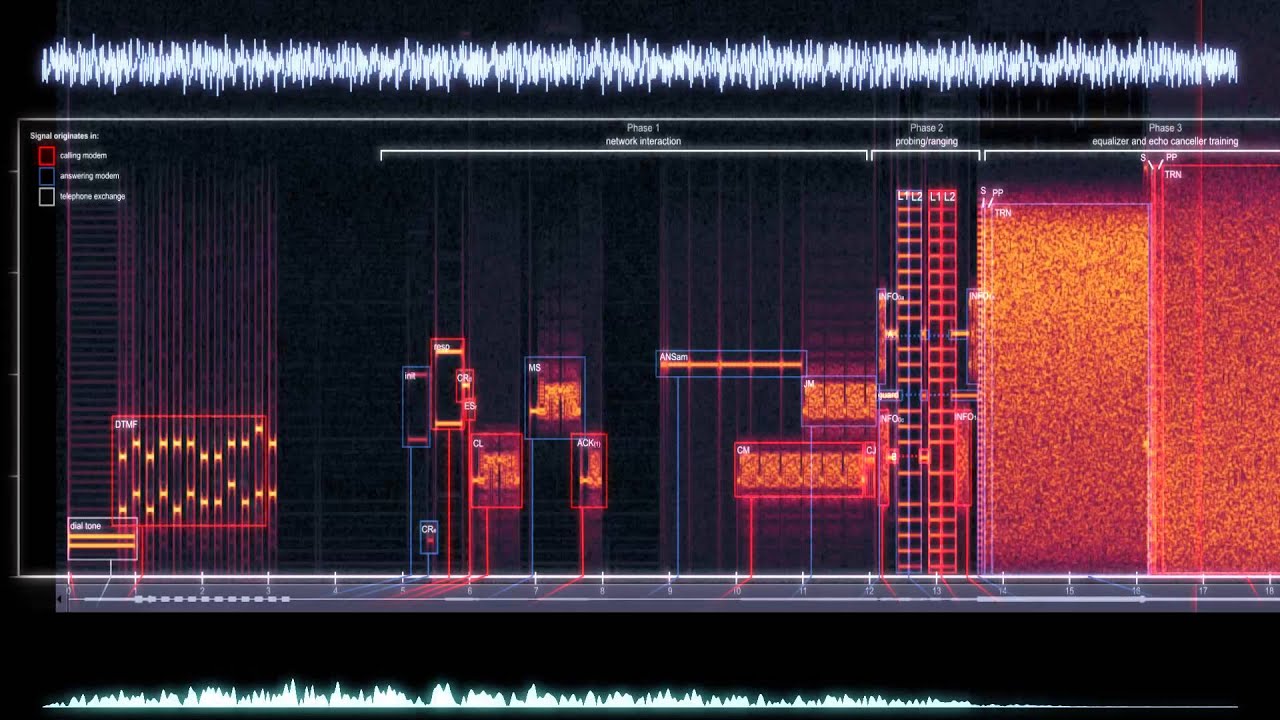 ダイヤルアップ接続の波形をスペクトログラム化した動画。