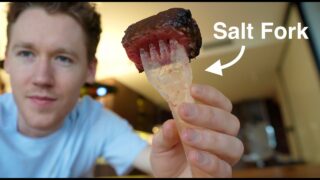 そんな岩塩ブロックから作ったフォークでステーキを食べてみた動画です。