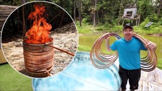 ドラム缶にパイプを巻き、その中で薪を燃やして水を温めるというシステムです。
