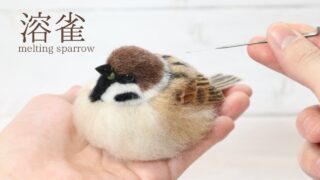 溶けてるみたいにフワッフワしてる冬毛の雀を羊毛フェルトで制作する動画。