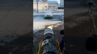 ジェットエンジンの熱で車に積もった雪を解かすスゲェ動画。