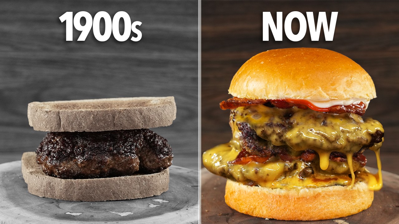 1900年代から2000年代の100年間のハンバーガーを作ってみた料理動画。