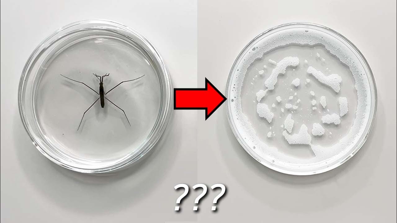 そんなアメンボを石鹸水に入れるとどうなるのか検証してみた動画。