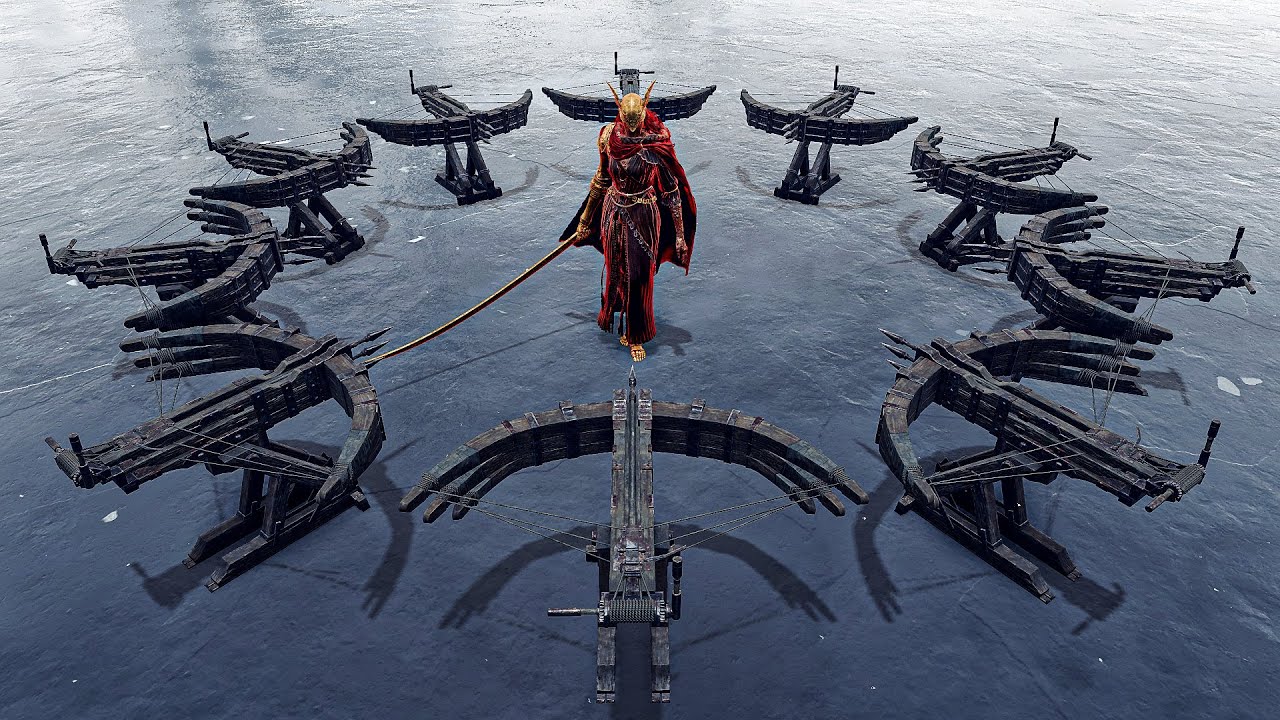そんなエルデンリングの10機のバリスタでボスたちを討伐していく動画。