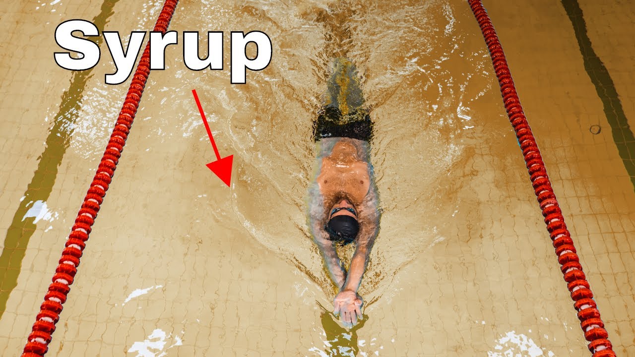 シロップの中を泳ぐのは水の中を泳ぐのと同じくらい簡単でなのか検証してみた動画。