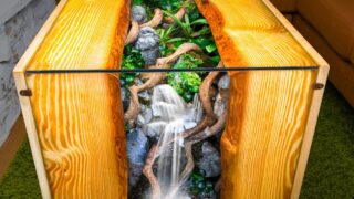 すごい本物の滝が流れるテラリウムのコーヒーテーブルを作ってみた動画。